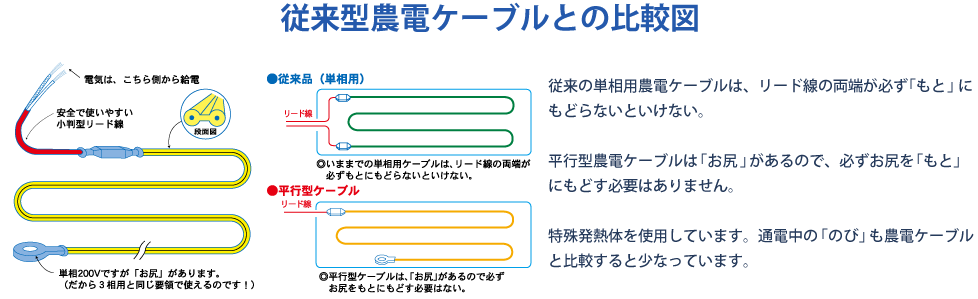 作業効率と発熱効率に優れた平行型農電ケーブル